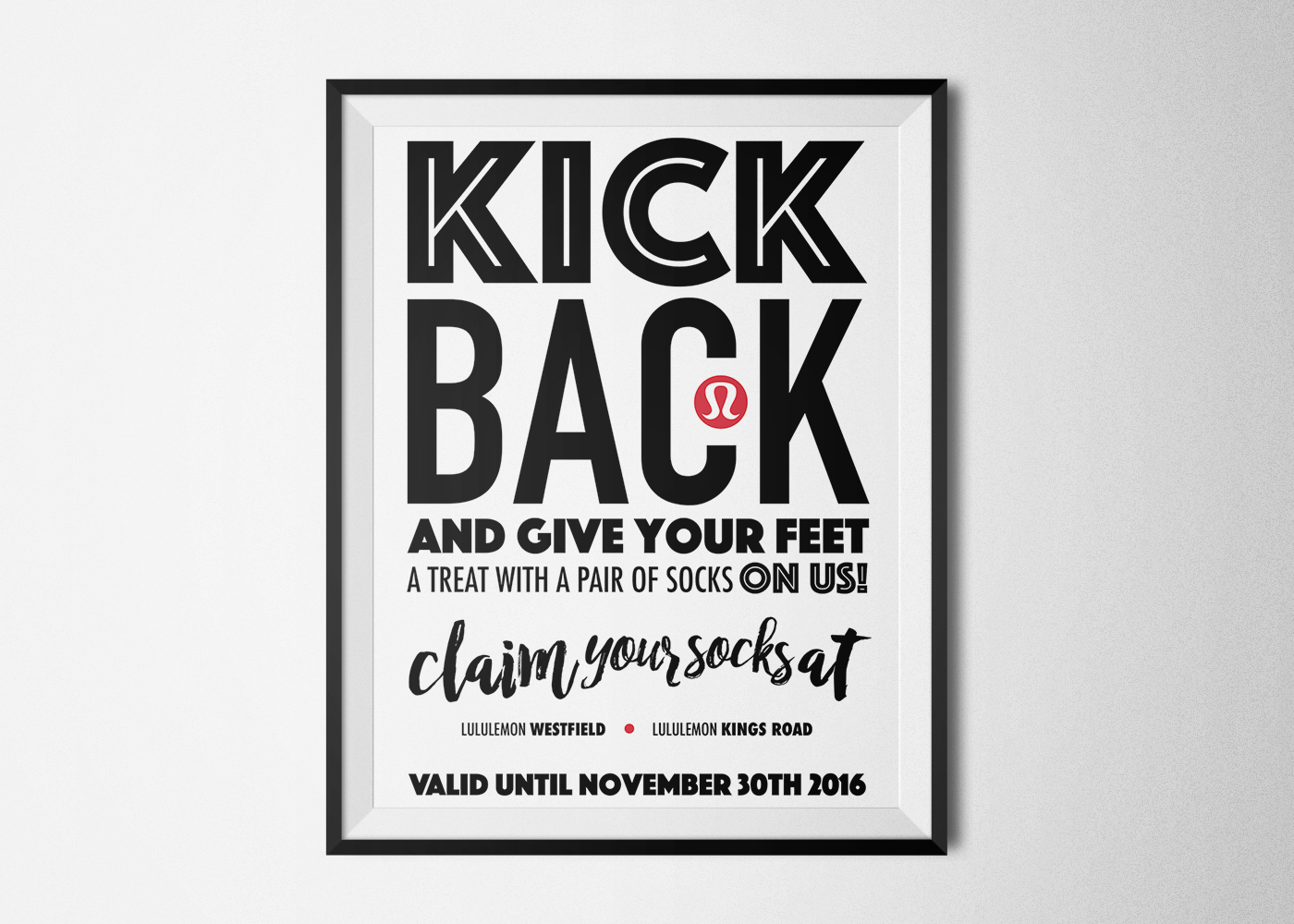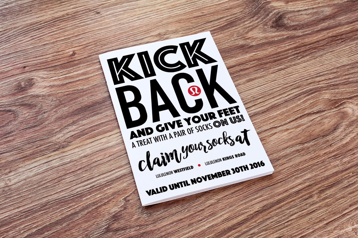 Promotion Poster / Flyer for Lululemon's Westfield and Kings Road stores in London.